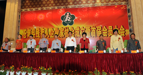 (苍南县残疾人企业家协会成立现场(图右二为首届会长薛宁))