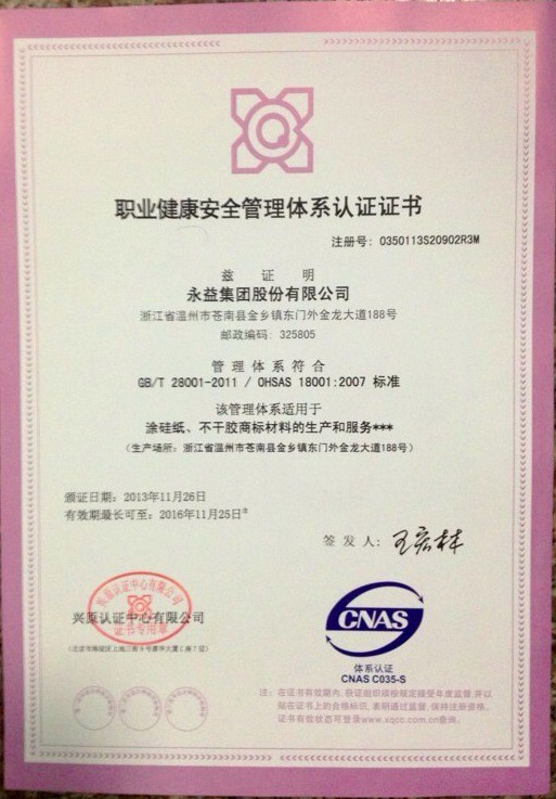 永益集团股份有限公司,从2004年开始先后推行ISO9001质量管理体系,IOS14001环境管理体系,GB/T28001职业健康安全管理体系,通过一系列的措施,理顺了企业内部关系,加强了企业管理机制;使生产过程、产品质量、环境因素、节能减排、安全生产、员工健康等方面有章可循,规范运作;促进了企业的形象建设、品牌建设,为推动企业的持续发展起到良好作用。