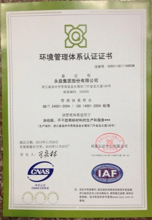 永益集团股份有限公司,从2004年开始先后推行ISO9001质量管理体系,IOS14001环境管理体系,GB/T28001职业健康安全管理体系,通过一系列的措施,理顺了企业内部关系,加强了企业管理机制;使生产过程、产品质量、环境因素、节能减排、安全生产、员工健康等方面有章可循,规范运作;促进了企业的形象建设、品牌建设,为推动企业的持续发展起到良好作用。
